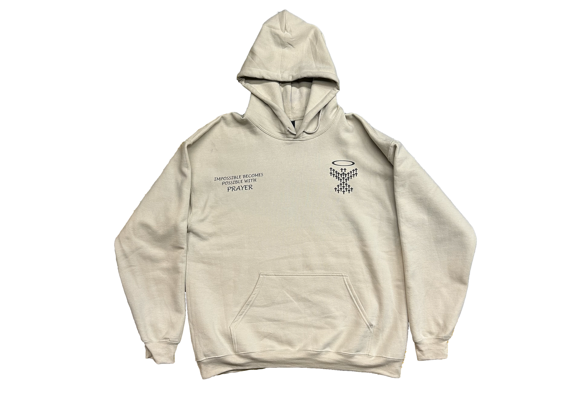 - Large back graphic with faith-inspired artwork